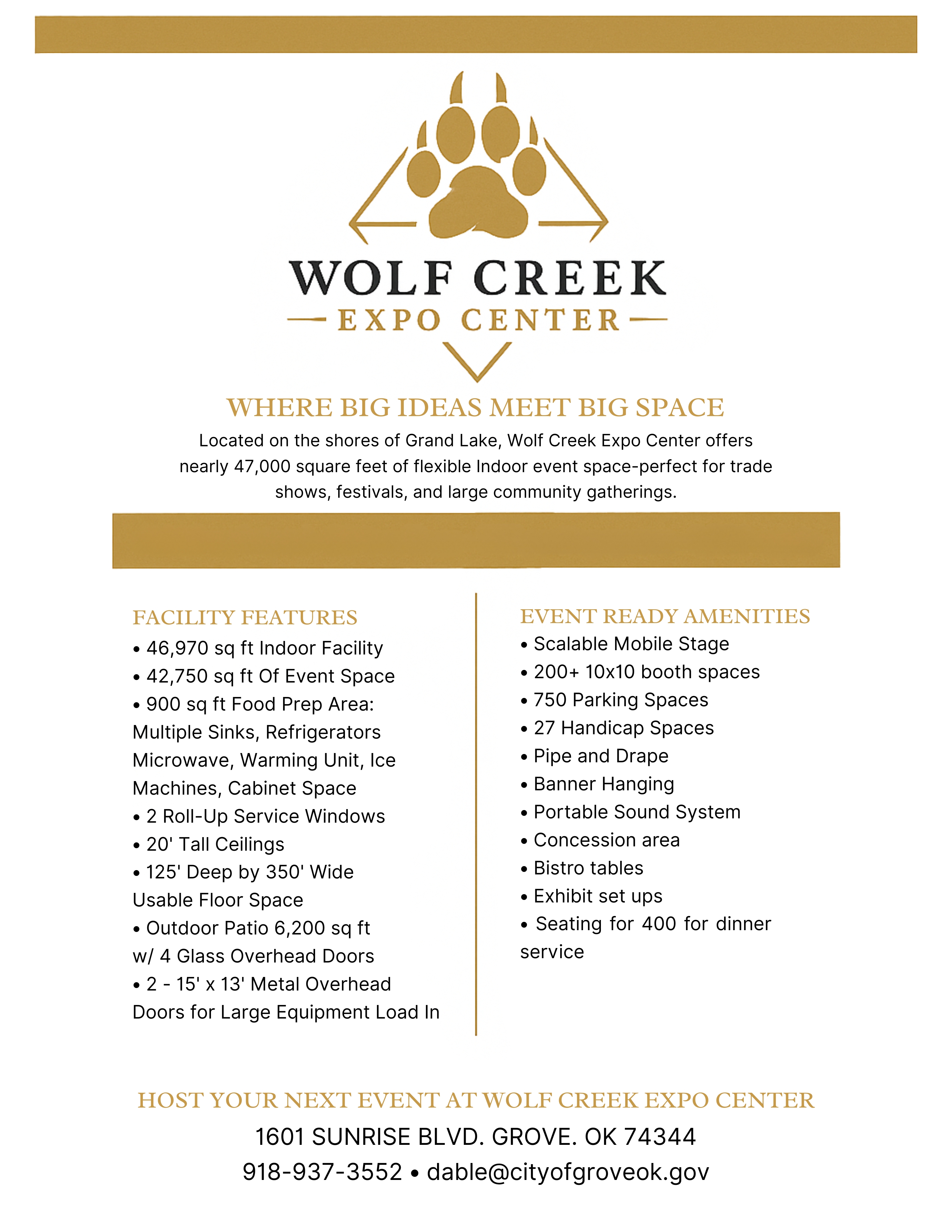 - On-line Store Photo Gallery Events Where to Eat Where to Stay Where to Park in Downtown Grove Wolf Creek Park & Boating Facility
